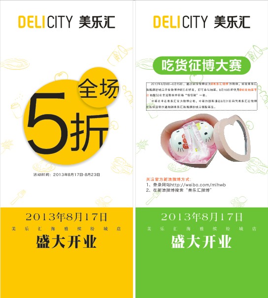 ③转发微博活动8月16日将抽取50名幸运粉丝,中奖顾客请在8月31日前凭美乐汇微博私信回复的通知到美乐汇海雅缤纷城店领取“情侣碗”一套,逾期作废。